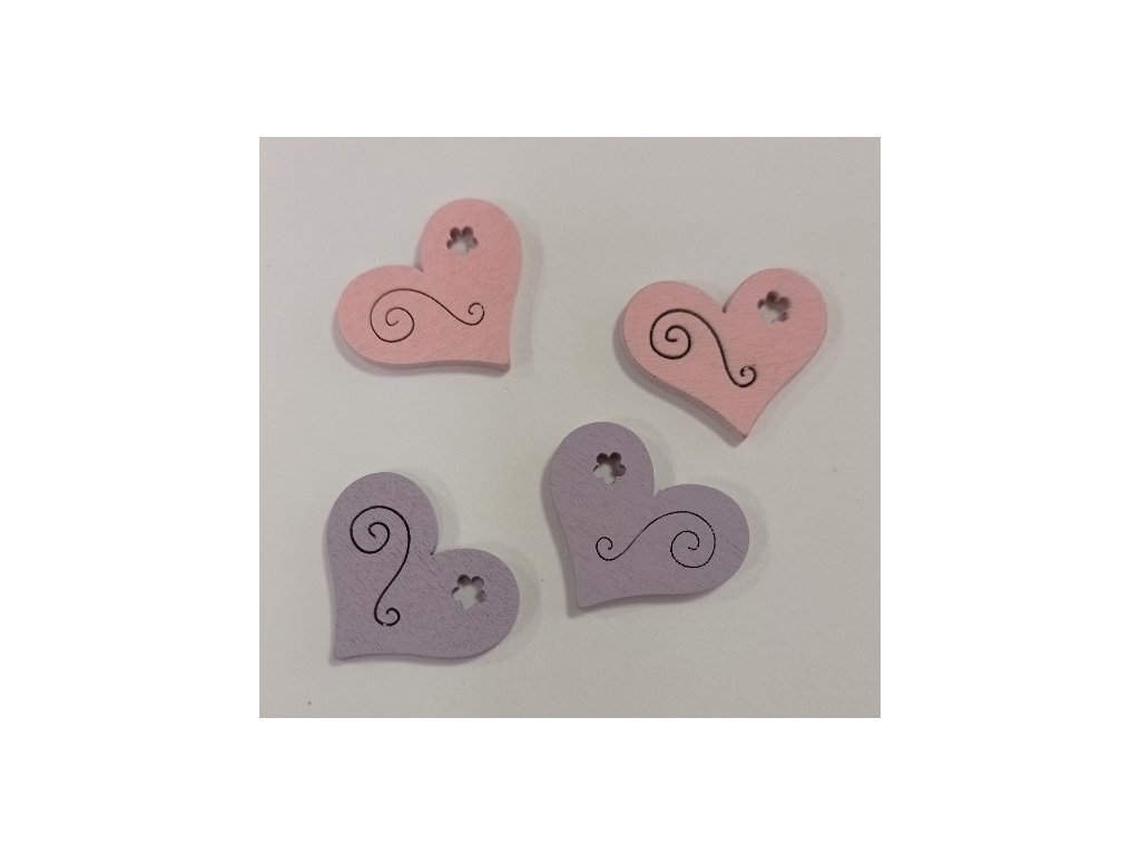Dekorace - dřevěné srdíčko 2,5cm 4ks, růžové a fialové