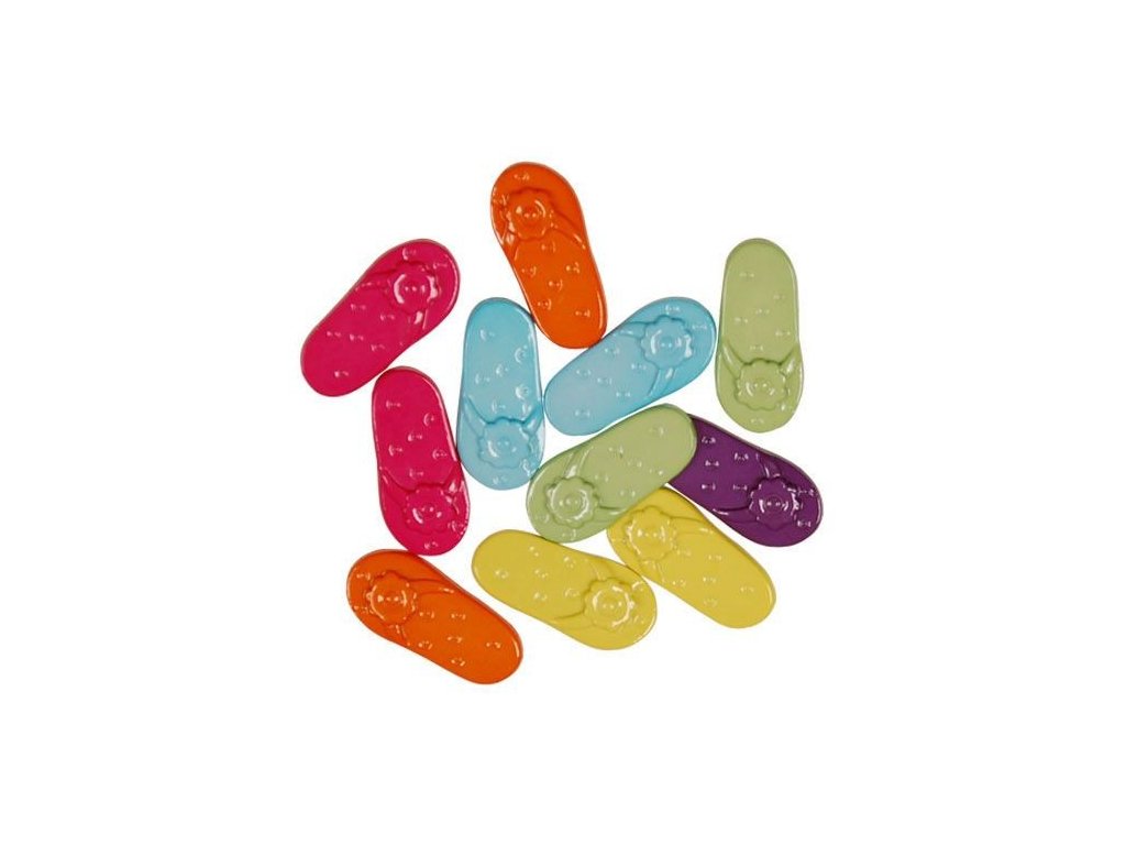 Rozzařte své letní projekty s těmito hravými dekoračními knoflíčky ve tvaru plážových žabek. Mix barev a velikost 22 mm dodají šmrnc každému Vašemu výtvoru. Balení obsahuje přibližně 11 kusů, takže máte dostatek materiálu pro Vaše nápady. Tyto knoflíčky jsou skvělým doplňkem na letní oblečení, tašky, plážové doplňky, ale také pro techniku scrapbooking.