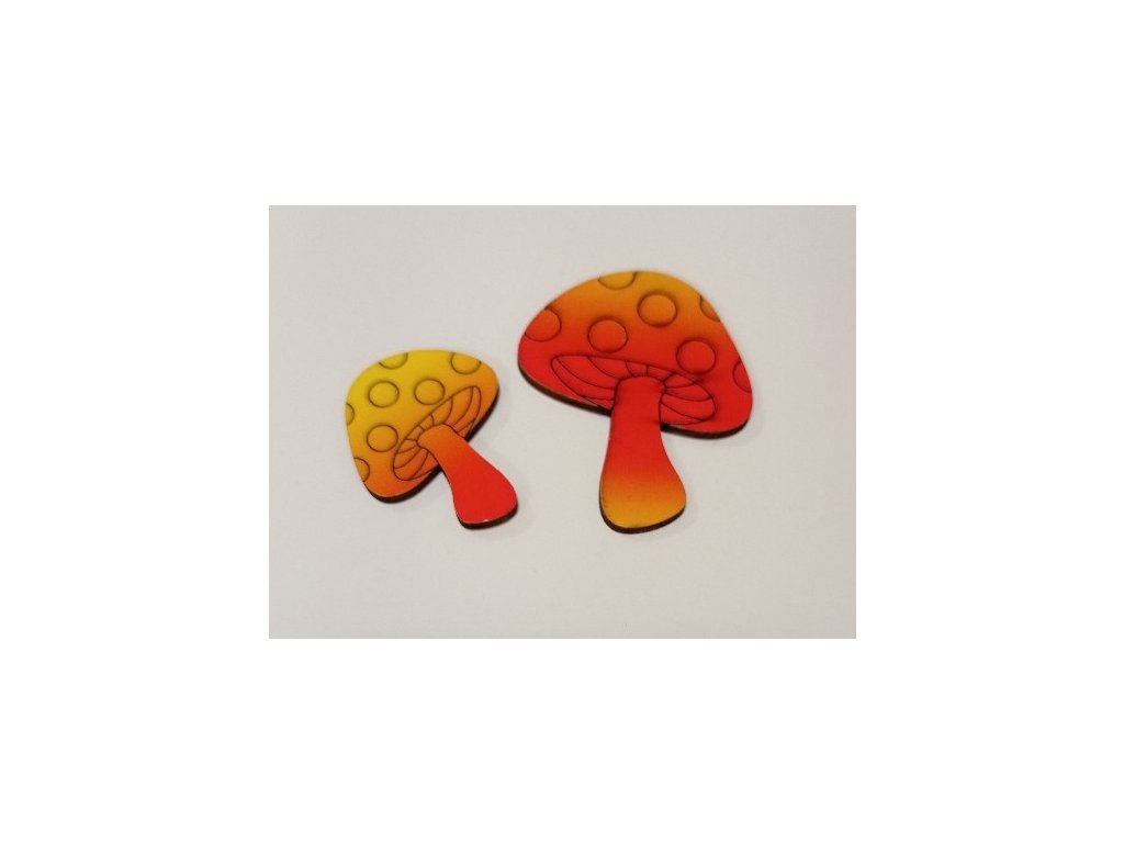 Drobná dřevěná dekorace - muchomůrka, velkost cca 5 x 4 cm a 3,5 x 2,8 cm. V balení 2 ks. Nevhodné pro děti do 3 let.