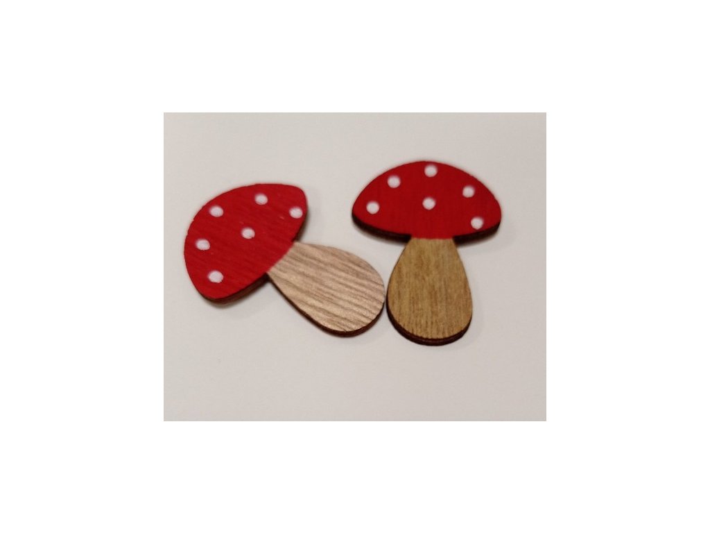 Drobná dřevěná dekorace - muchomůrka, velkost cca 4 x 3 cm. V balení 2 ks. Nevhodné pro děti do 3 let.