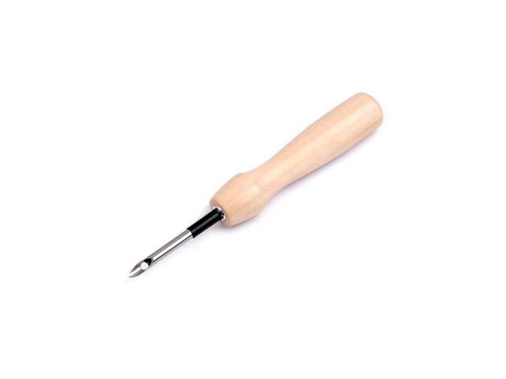 Dutá vyšívací jehla s dřevěnou rukojetí. Rukojeť na jehle je z nelakovaného dřeva. Délka: 11 cm. Průměr: 3,5; 5 mm. Nevhodné pro děti.
