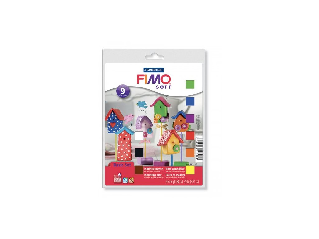 Sada obsahuje 9 polobloků FIMO Soft 25 g, 1 lahvičku lesklého laku 10ml a modelovací pomůcky. Nevhodné pro děti do 3 let.