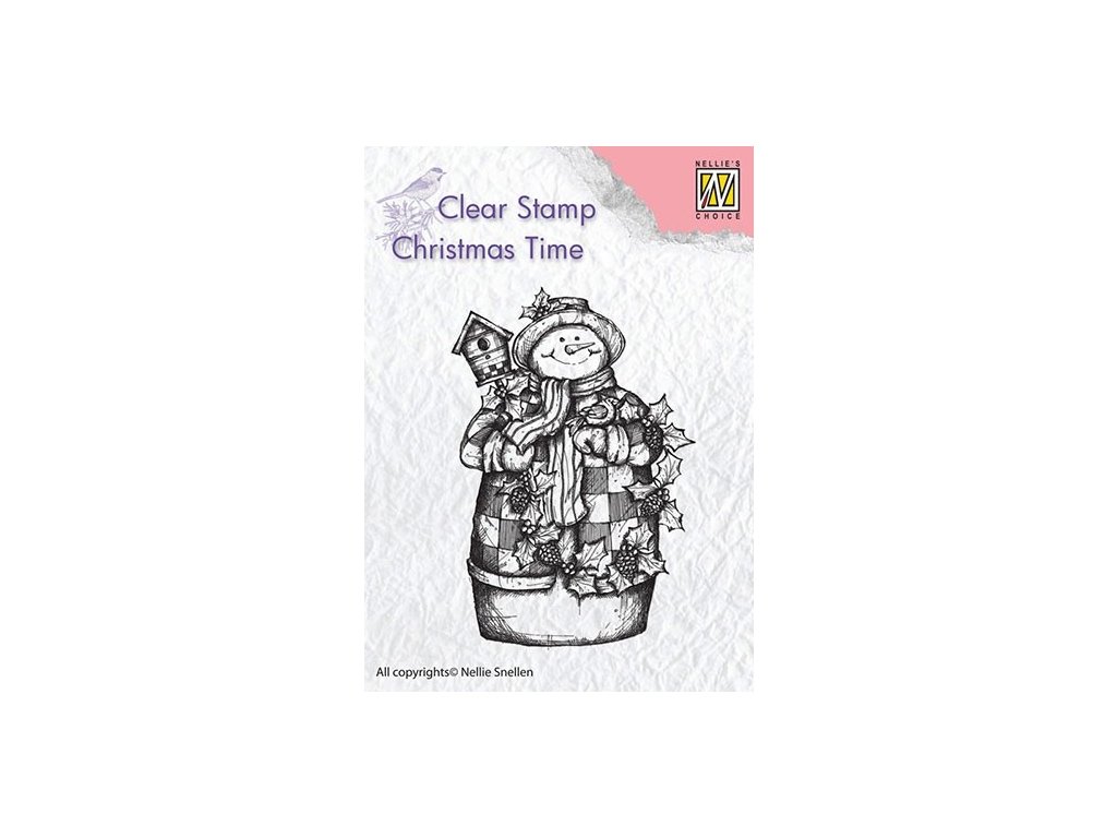 Gelové razítko - sněhulák s ptačí budkou