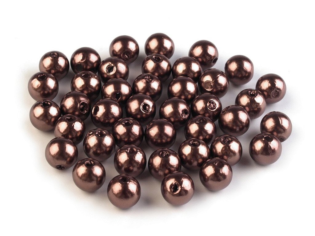 Korálky plastové - imitace perel 10 mm, hnědá, 18 ks