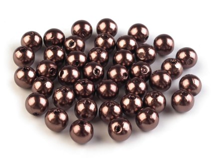 Korálky plastové - imitace perel 7 mm, hnědá, 30 ks