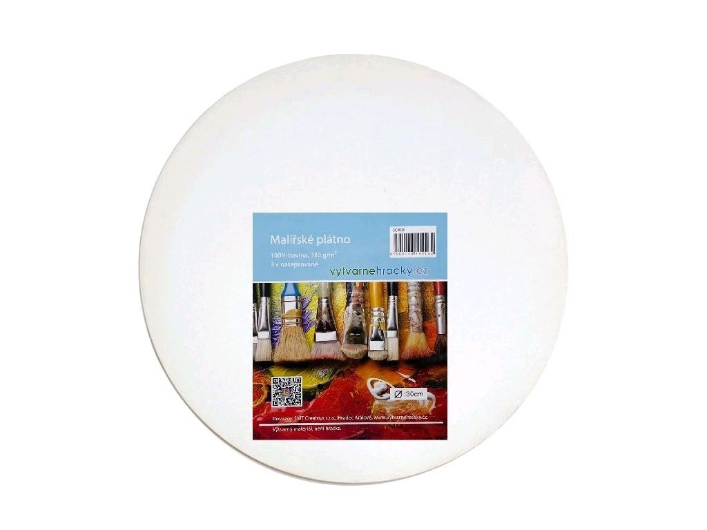 Kulaté malířské plátno, O 50 cm, 100 % plátno, 380 g/m2, 3x šepsováno - nataženo na rám z borovicového dřeva. Nevhodné pro děti do 3 let.