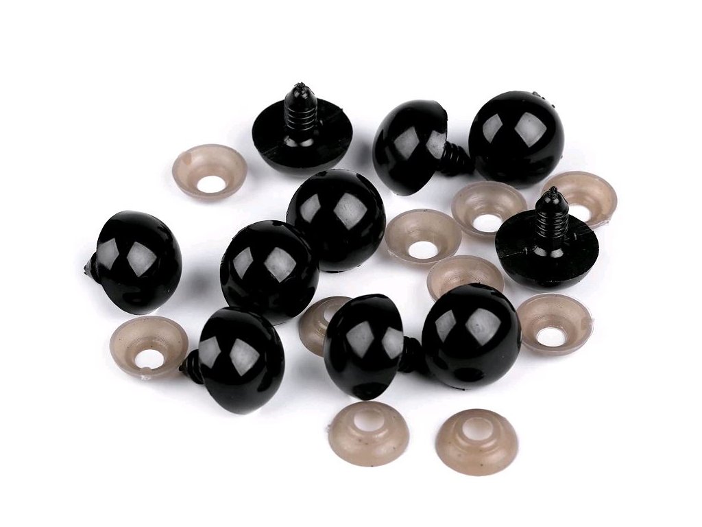 Polokulatá plastová očka využijete při tvorbě plyšových, háčkovaných, či jiným způsobem vyrobených postaviček nebo zvířátek. Očička mají vrut se závitem, na který se přicvakne pojistka, čímž se očička bezpečně připevní na místo.