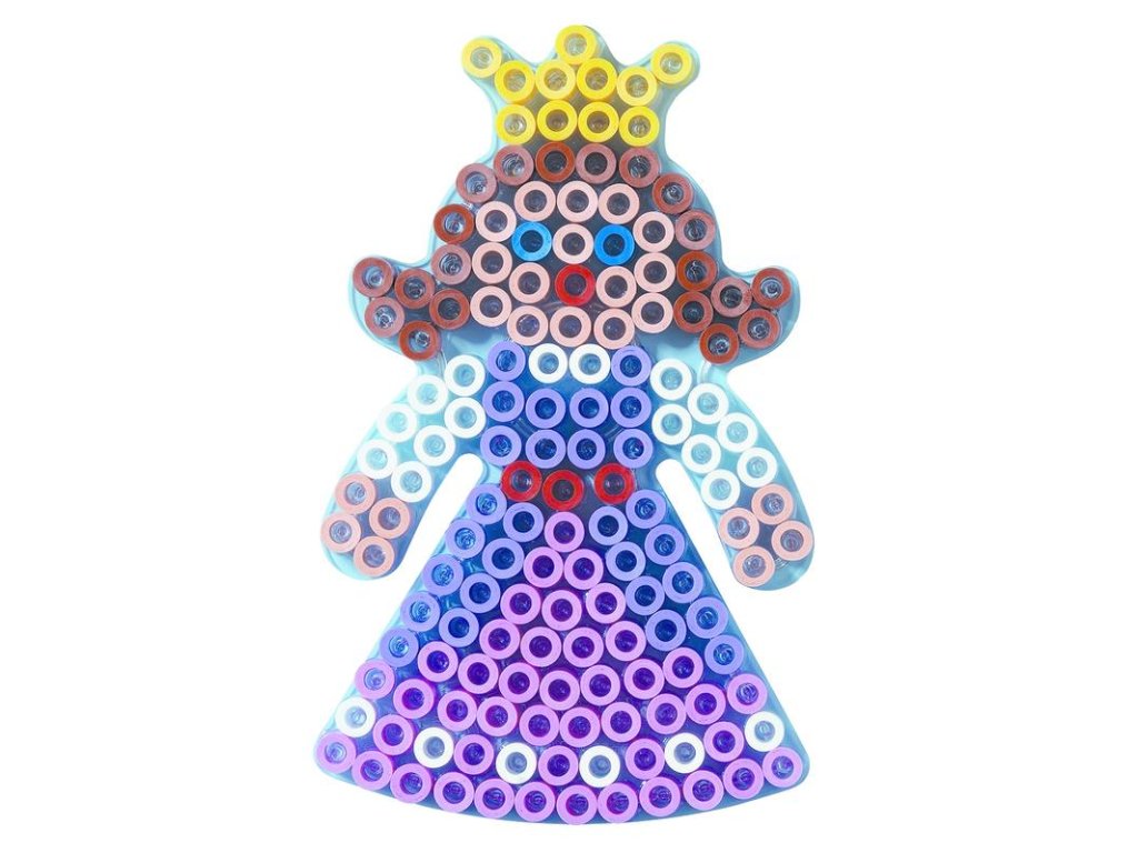 Průhledná podložka pro zažehlovací korálky MAXI - princezna. Pomůcka k procvičení fantazie, zručnosti, trpělivosti, rozeznávání tvarů a barev, rozvíjení motoriky atd. Podložku lze položit na předlohu a dítě tak může stavět podle barev.