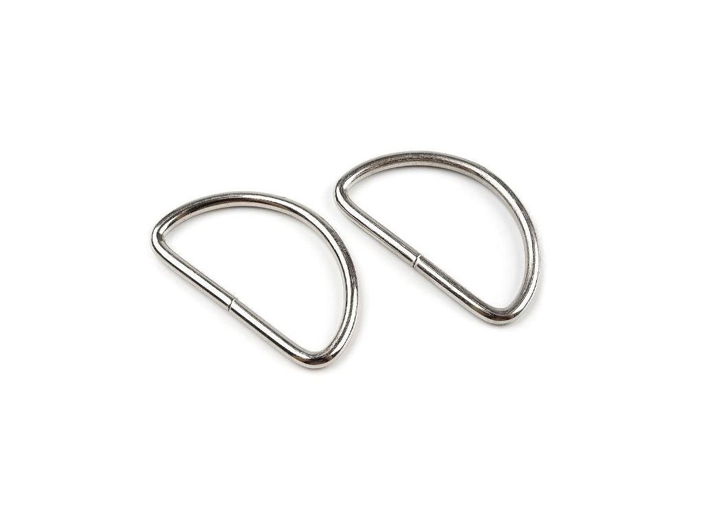Kovový polokroužek vhodný k výrobě kabelek. Velikost 38 mm, barva nikl. V balení 2 kusy.