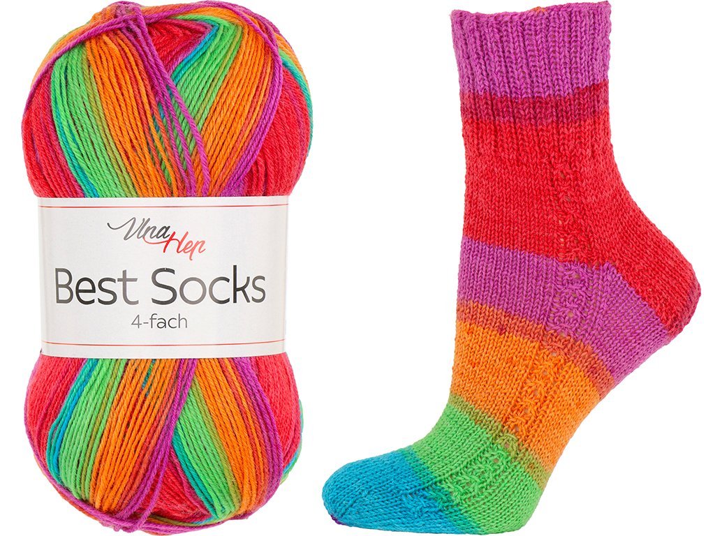 Dopřejte svým nohám luxus a teplo s ponožkovou přízí Best Socks v různobarevném mixu. Tato příze je ze 75 % z vlny superwash a z 25 % z polyamidu, díky čemuž jsou ponožky hřejivé, ale odolné. Z 150g klubíčka s návinem 420 m upletete celý pár ponožek. Doporučujeme použít jehlice velikosti 3-3,5. Příze Best Socks se skvěle hodí i na svetr, vestu, čepici nebo rukavice.