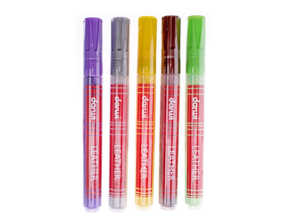 Fix na kůži a koženku Darwi Leather je naplněn speciální barvou určenou k dekoraci kůže, koženky, deštníků a textilu. Fixy mají světlostálé a brilantní odstíny a mimořádné krycí vlastnosti. Nanášejí se na čistý, odmaštěný a suchý povrch a po zaschnutí (48 hodin), jsou voděodolné. Nevhodné pro děti do 3 let.