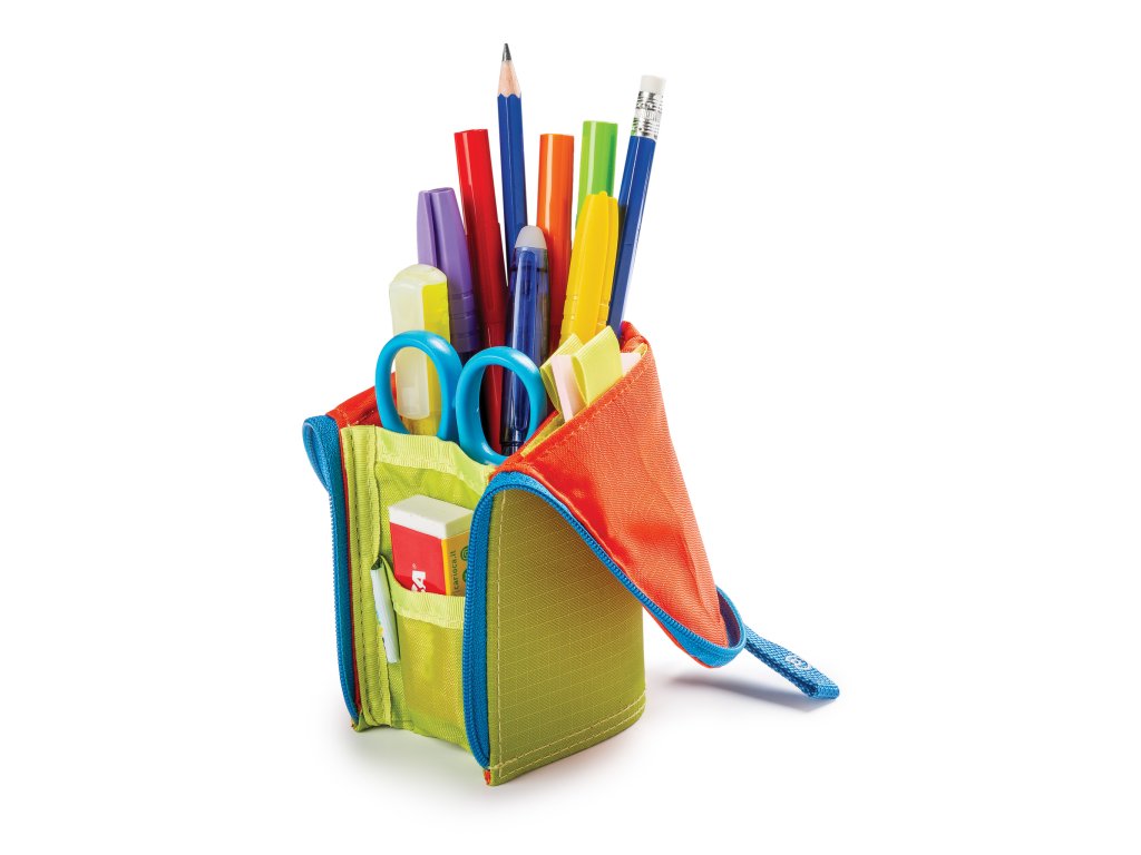 - Škola: Uložení psacích potřeb, pravítka, gumy.