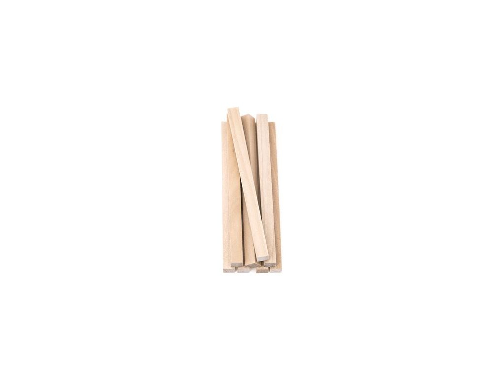 Přírodní čtvercová dřívka 8 ks, rozměry cca 1 x 15 cm. Nevhodné pro děti do 3 let.