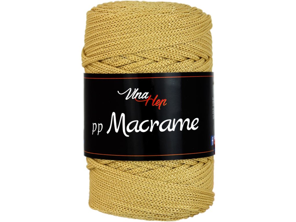 Příze pp macramé. Složení: 100 polyester, návin: 100 gr - ca 85 m, doporučené jehlice 4,5 - 6,5. Lesklá polyesterová příze je vhodná na výrobu pletených a háčkovaných bytových doplňků, tašek, kabelek a košíků. Nevhodné pro děti do 3 let.
