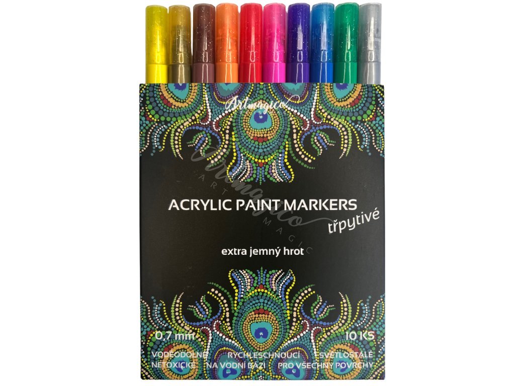 Sada akrylových popisovačů Artmagico 0,7mm TŘPYTIVÉ, 10ks