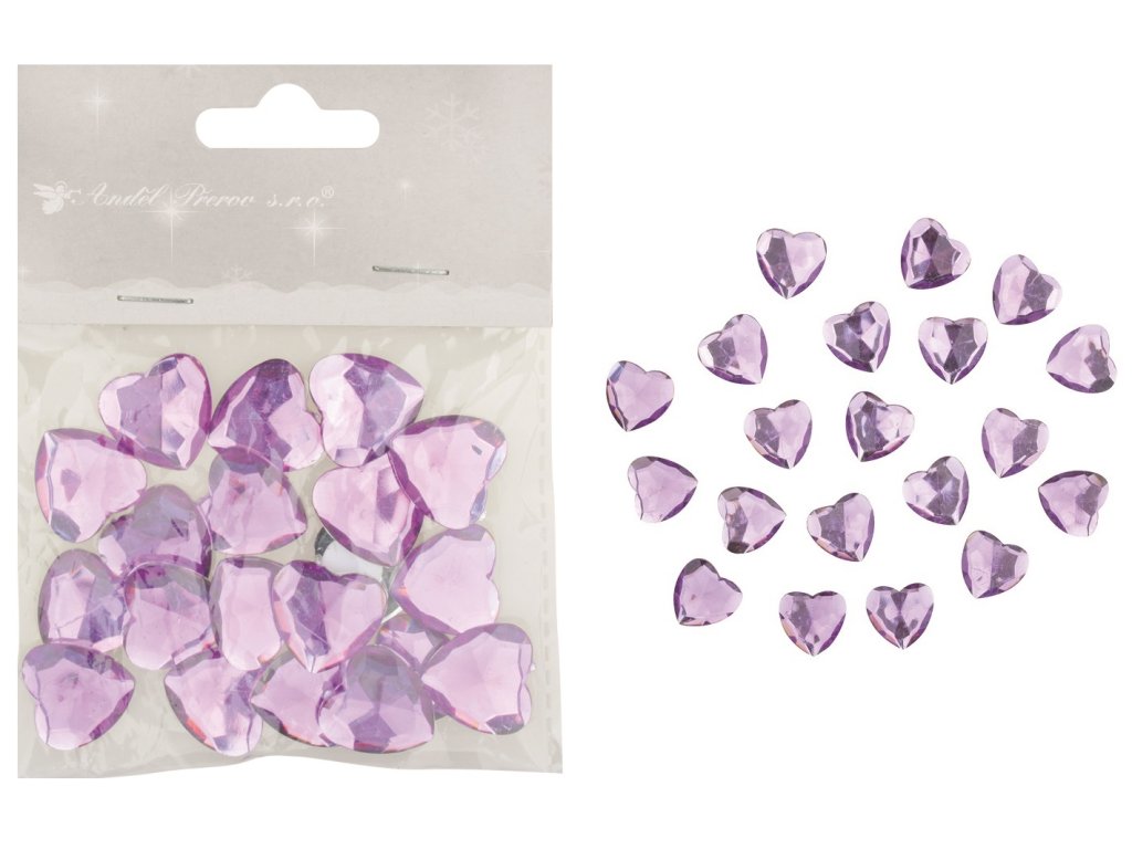Srdíčka - samolepicí, 2cm, 20ks - fialová