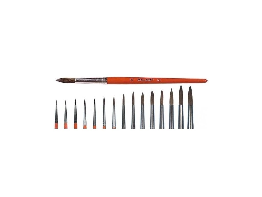Kulatý štětec, chromovaná mosazná zděř, krátká oranžově lakovaná násadka. Je vhodný ke školnímu použití při akvarelových technikách a na temperovou malbu. Materiál - vlas PONY, 70 % štětin z přírodní kozí srsti + 30 % syntetického vlákna. Nevhodné pro děti do 3 let.
