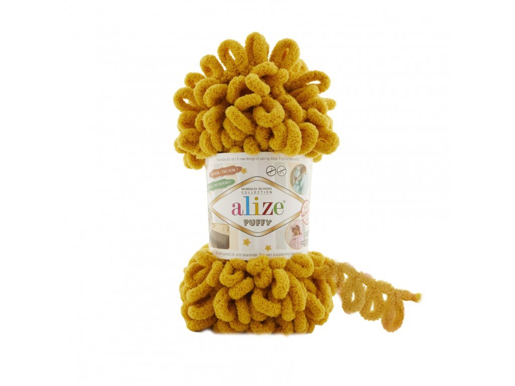 Extra měkká a hebká příze Alize Puffy v hořčicovém odstínu je ideální pro ruční pletení bez jehlic. Tato inovativní příze se 100% mikropolyesteru má předpřipravená očka, díky kterým je pletení snadné a rychlé i pro úplné začátečníky. Klubíčko o hmotnosti 100 g má návin přibližně 9,2 m. Vytvořte si originální deky, přehozy, polštáře, šály a další doplňky, které vás i vaše blízké zahřejí a potěší.