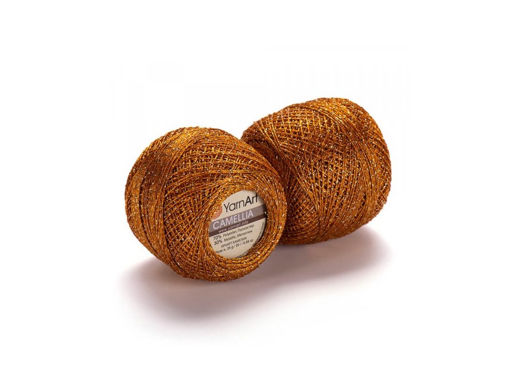 Vyšívací příze Camellia. Složení 70% Polyester, 30% Metalické vlákno.Váha 50 g, návin 190 m, háček/jehlice: 1,25.